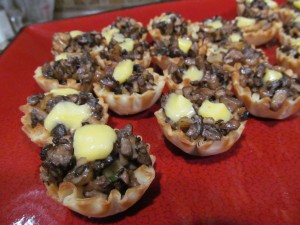 These tartlets were really quite simple to make. All it takes is a basic shortbread crust, mini muffin tins, some good quality caramel sauce, dark chocolate, and nuts. You want to make sure that you have all of your ingredients ready before you bake the crusts.