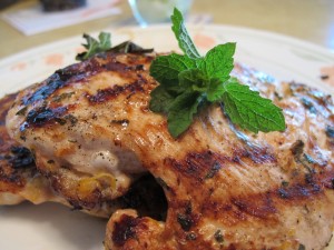 Grilled boneless, skinless chicken breast marinated in olive oil, Meyer lemon, and lemon balm.